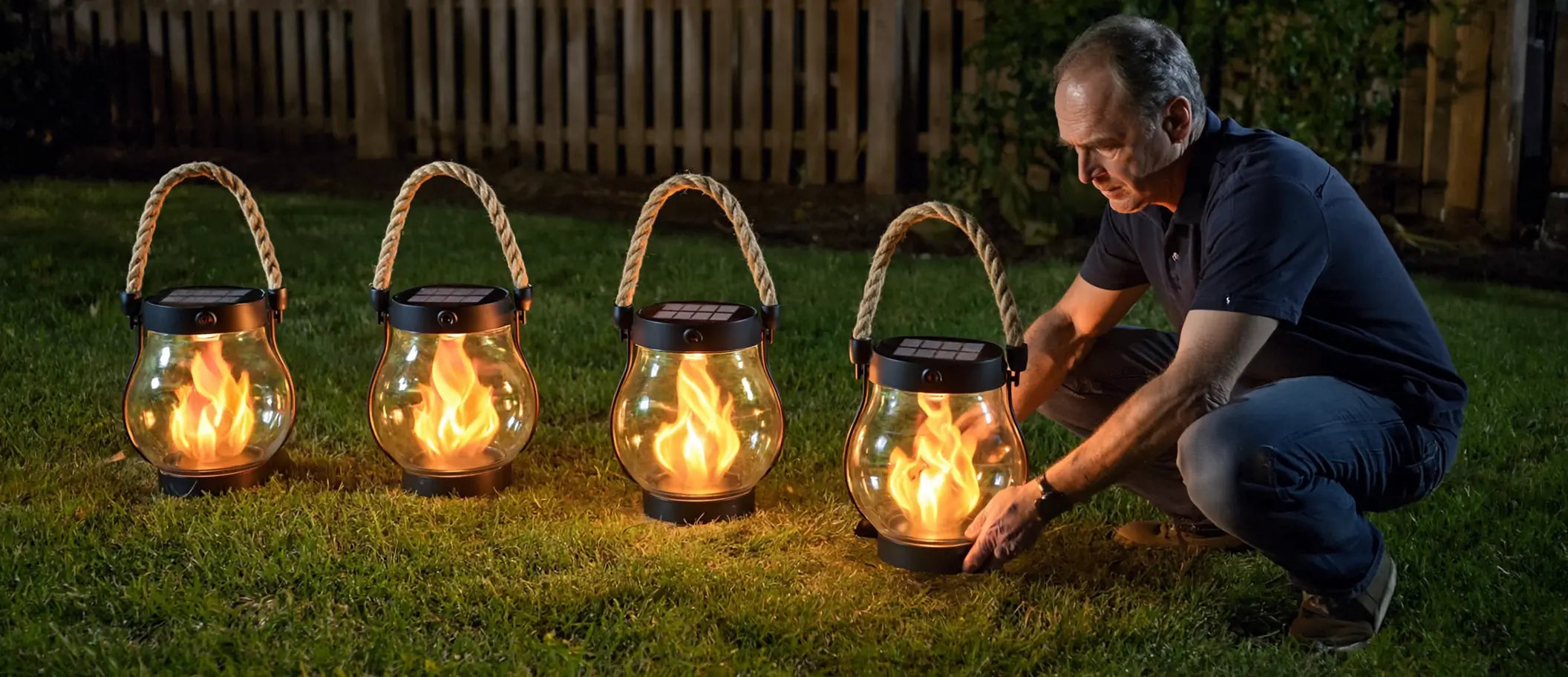SolarFire - Outdoor Solar Lantern With Fire Effect Light.